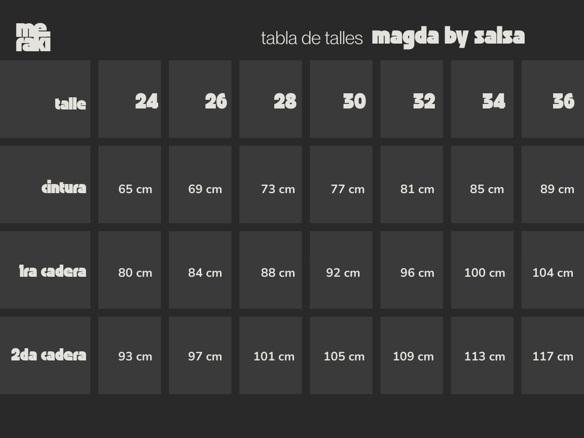 te dejamos la tabla de talles de la marca, las medidas son aproximadas.